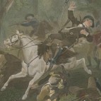 As a young soldier of 17, Private James P. Collins (1763–1843) served in the South Carolina militia under the command of General Thomas Sumter. Collins’ first-person account of the Battle of Cowpens in 1781, following the fall of Charleston to the British, describes the hardships and destruction of war. He writes about the scarcity of food and the impact it had on the daily lives of soldiers, who often marched into battle on empty stomachs or having eaten little more than raw turnips or parched corn picked along the way. Collins chronicled his dramatic experience on the battlefield in Autobiography of a Revolutionary Soldier (1859).