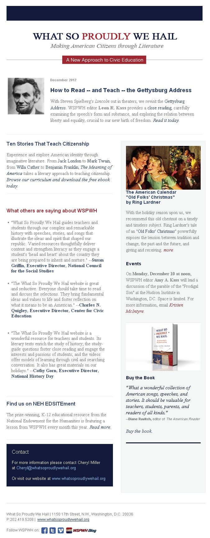 Our December newsletter is out! Leon Kass reads the Gettysburg Address, and the WSPWH editors suggest Christmas reading. Don’t miss another update. Sign up for our newsletter and get a free ebook!